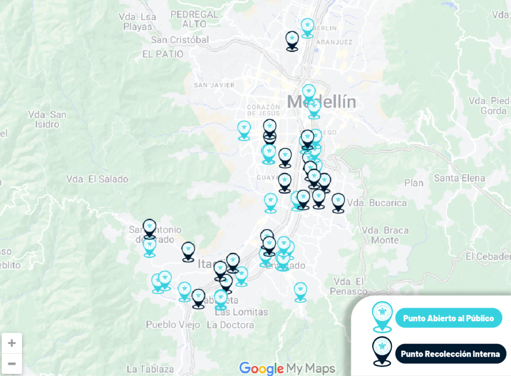 Tenemos alrededor de 100 puntos Plastieco en toda el área metropolitana del valle de aburra, donde empresas, mercados, restaurantes, colegios, y urbanizaciones se han unido para entregarnos de manera directa el plástico que sale de sus labores, para darle un correcto uso de manera ágil y segura, generando para ellos una economía interna